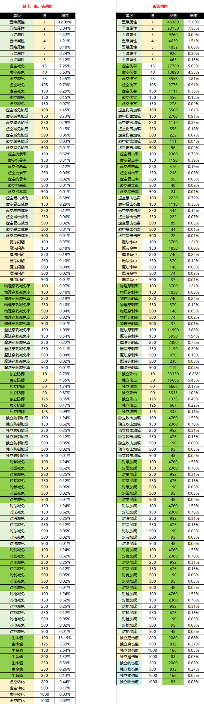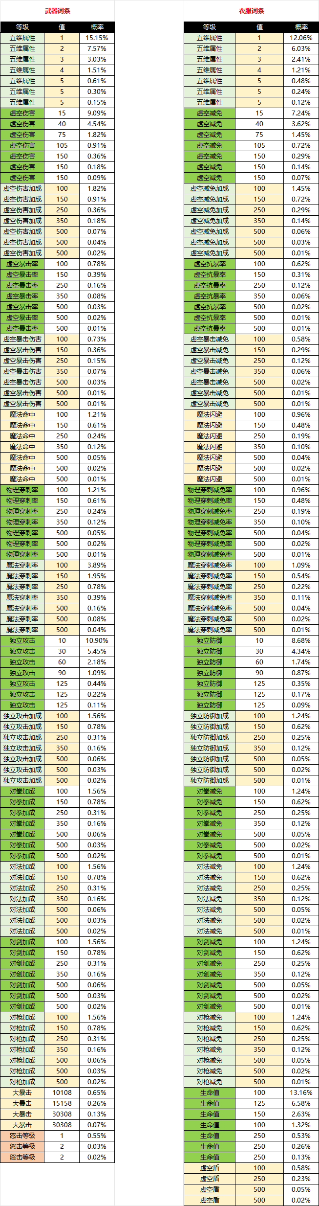 星际装备词条洗练概率公示